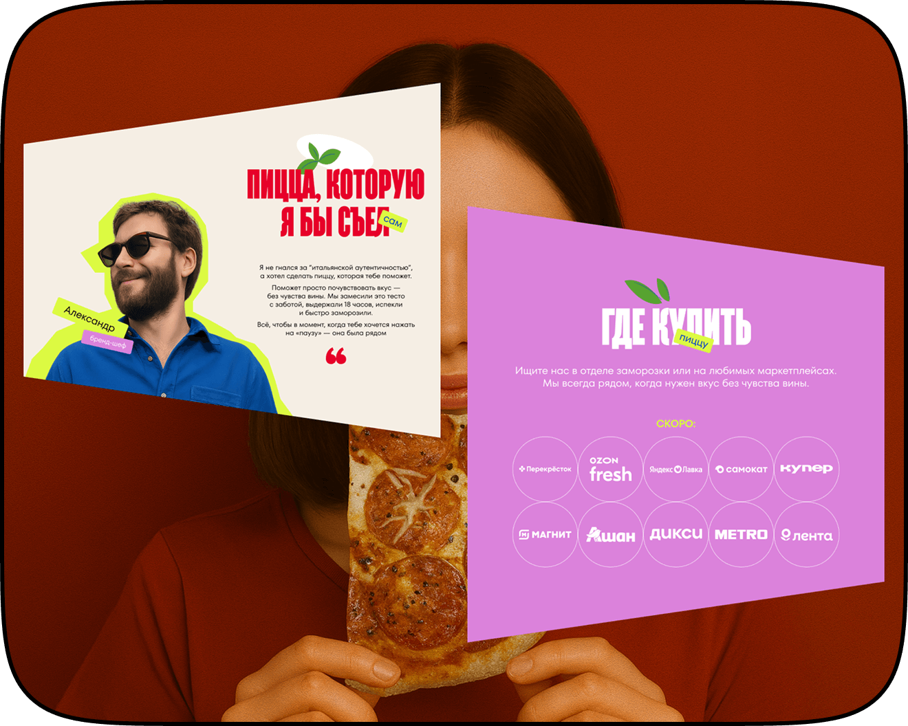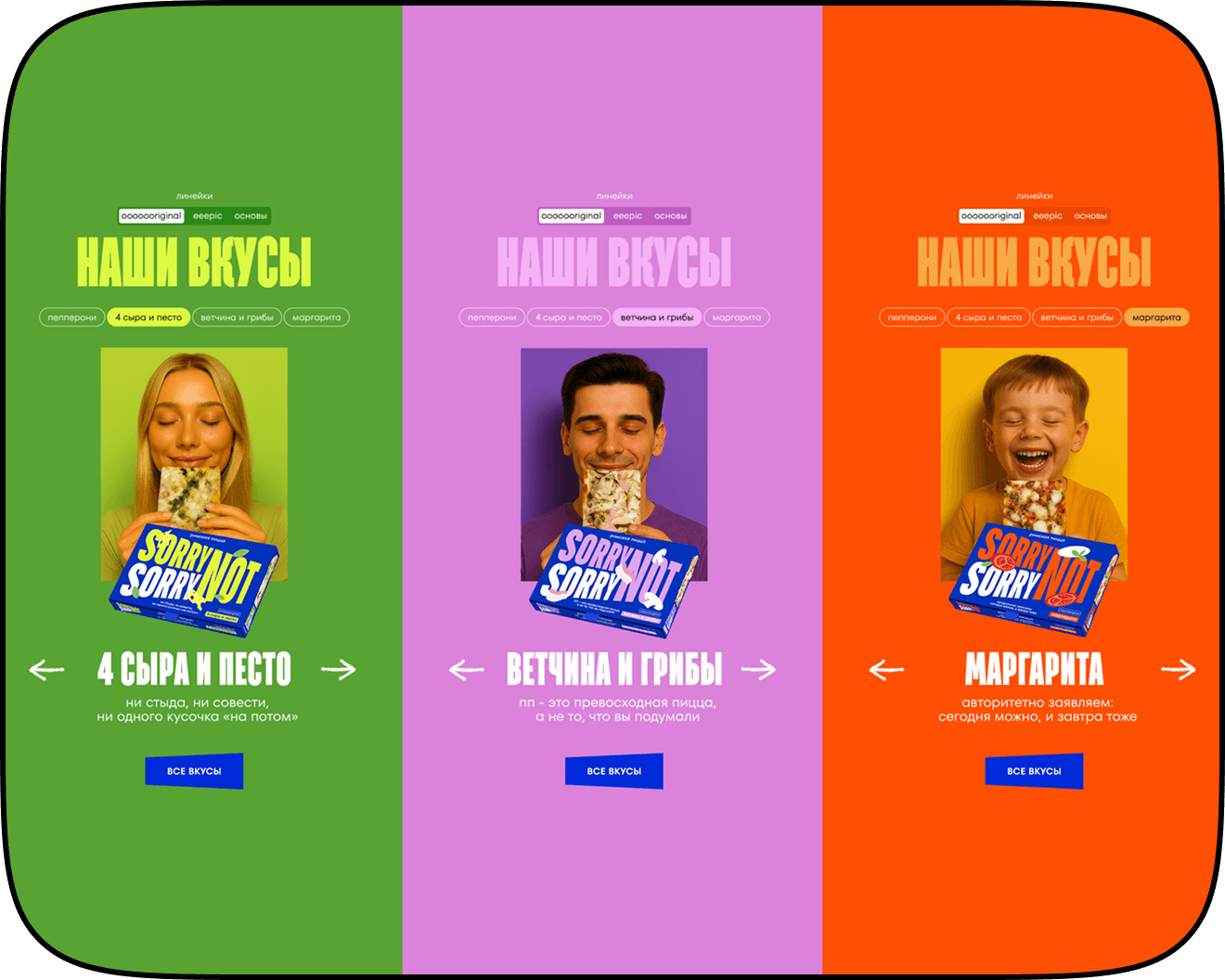 Sorry Not Sorry is a contemporary pizza brand that deliberately breaks familiar patterns. Instead of “proper” food imagery, it embraces a bold character, vibrant colors, and a visual language built around pleasure without guilt. It was important for the brand to speak to its audience emotionally and honestly, turning pizza from just a product into an anti-stress ritual.